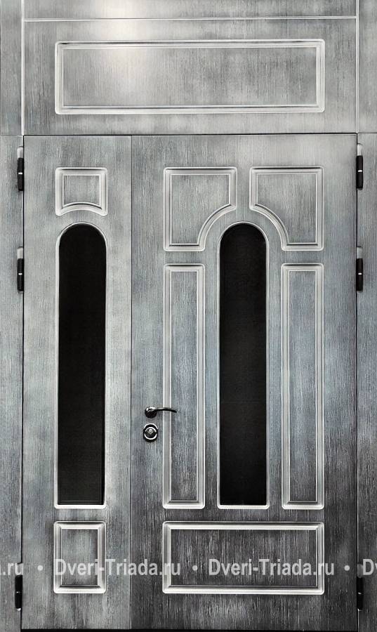 Полуторапольная входная термодверь с фрамугой и стеклами (МДФ с патиной) Арт-632