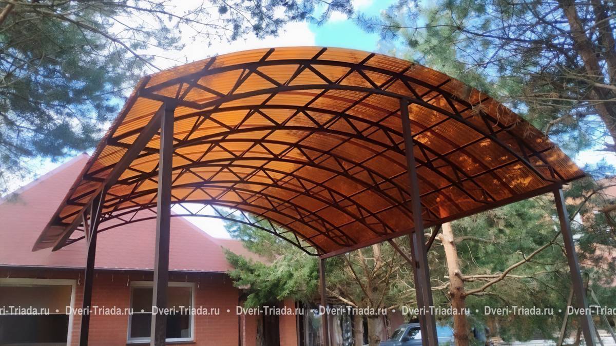 Арочный навес из оранжевого поликарбоната Арт-677
