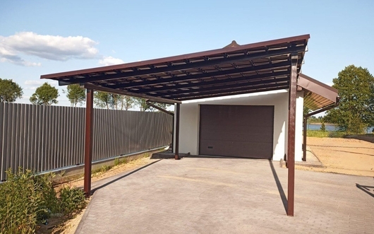 Односкатный навес из профнастила перед гаражом Арт-725